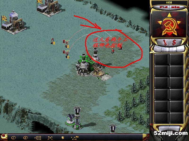 这儿有两个敌工程师也控制了占领跟前的敌兵营和电厂