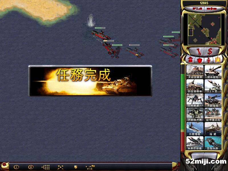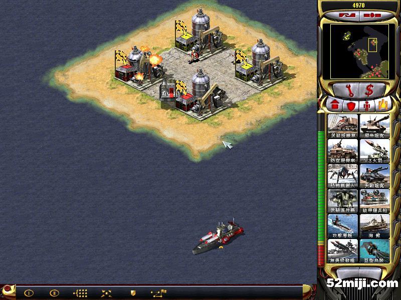 我方基地车到来,出潜艇和无畏舰配合消灭油井处敌人,占领油井(5)