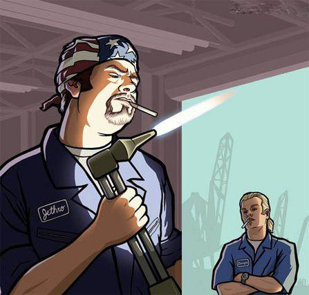注意:这两个人物在GTA Vice City也有出现,Vercetti第一次去游艇修理厂的时候遇到他们两位。