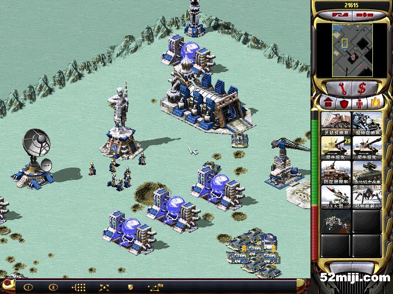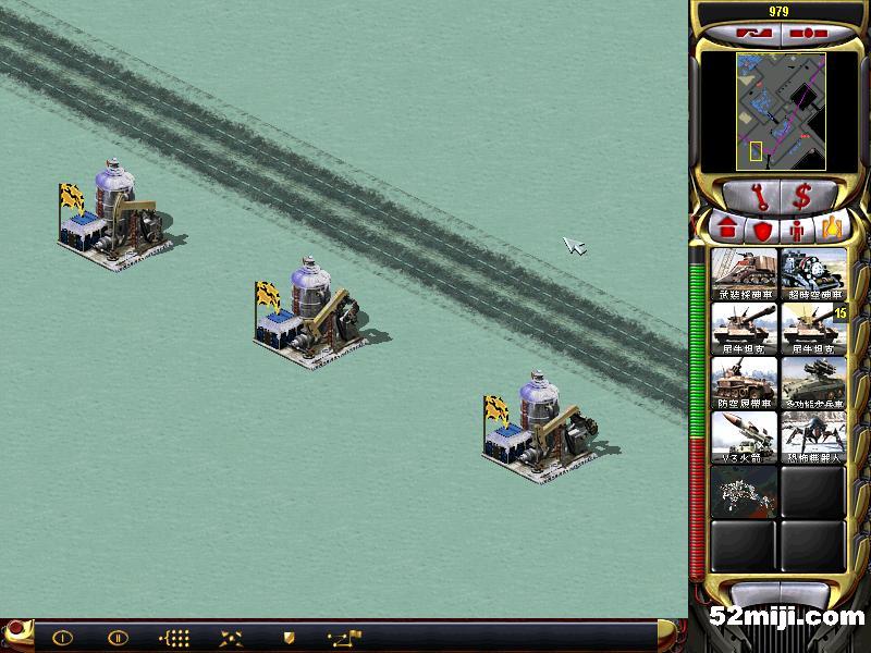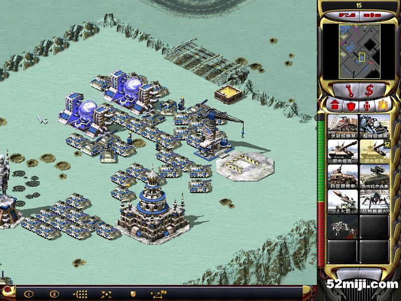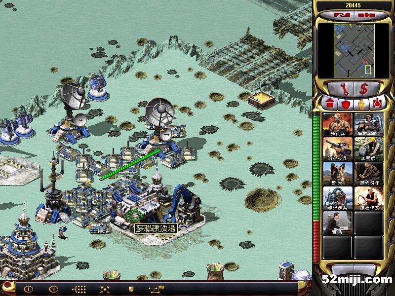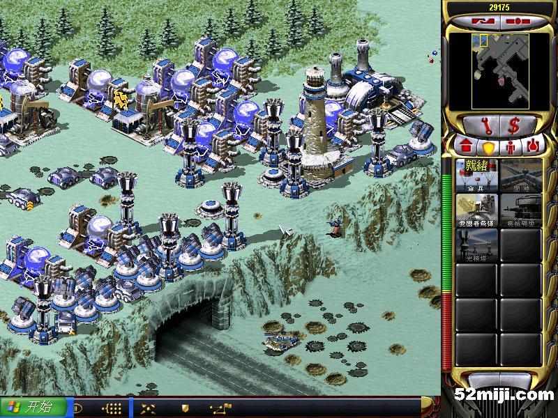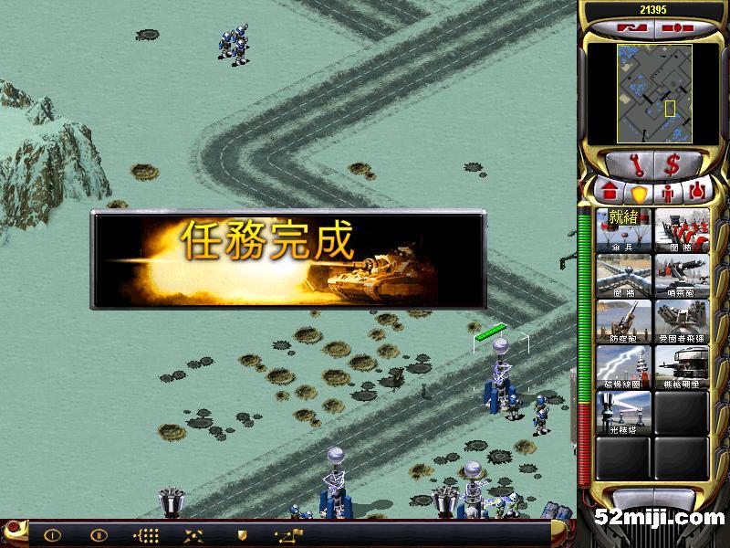 (技巧性不大,建立基地后,建一些解放军和光棱塔防守。然后多建轻坦克和多功能步兵车消灭敌人,可以占领他们的兵营、战车工厂、作战实验室......然后,建造苏联的坦克和步兵,慢慢消灭敌人吧。)
