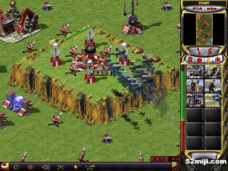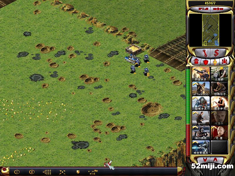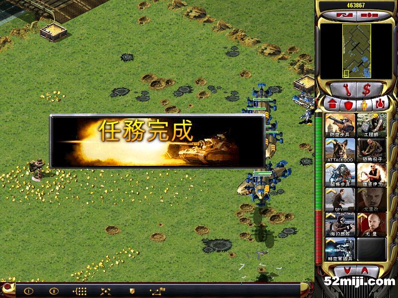(没有什么技巧可以说的。提醒大家多建防空,多建解放军,如果资金不够可以占领油库,也可以偷矿场。最后建天启把敌人抄了即可。)