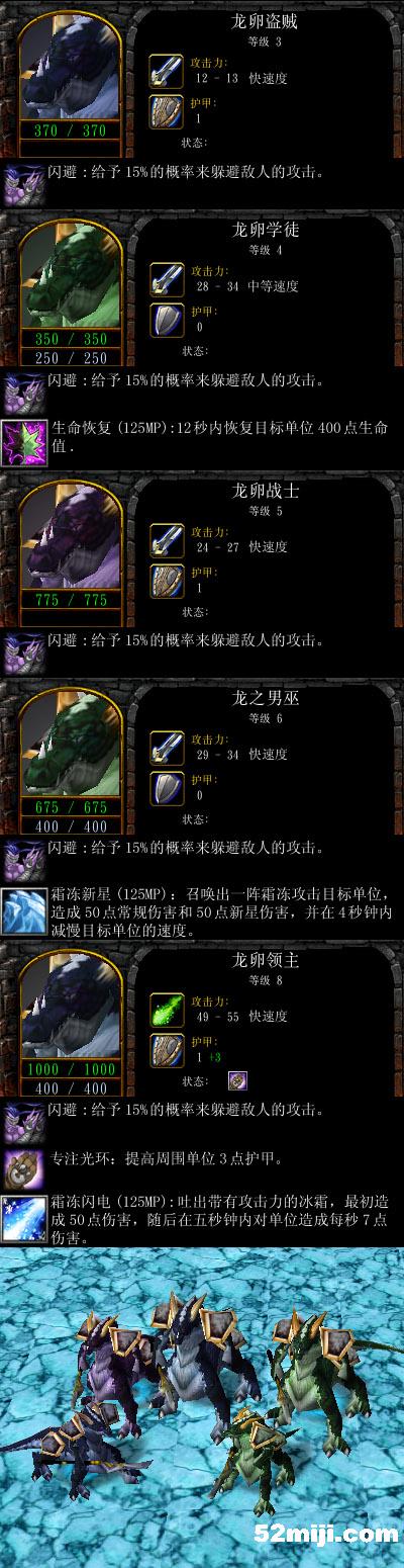 龙卵战士,他们都是很敏捷的怪物,都会闪避技能。注意龙卵领主的霜冻闪电类似于熊猫酒仙的喷火焰,是锥形的面杀伤魔法。
