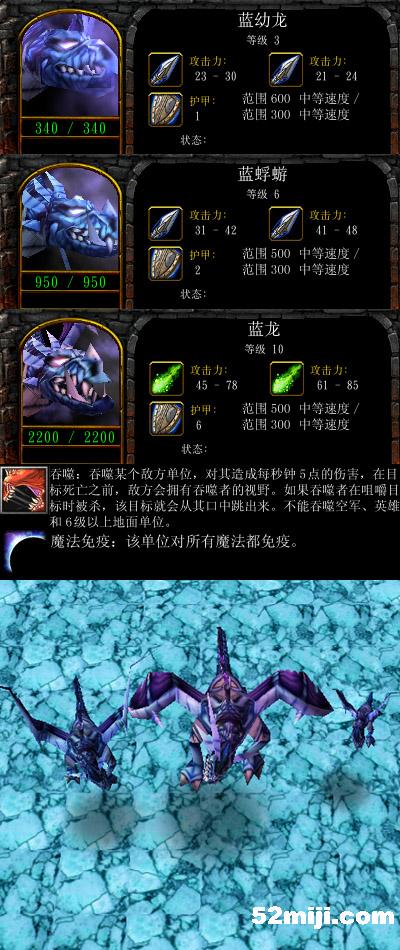 蓝幼龙:对地攻击力比红龙低2点,对空低4点,生命值少60,但是重甲。