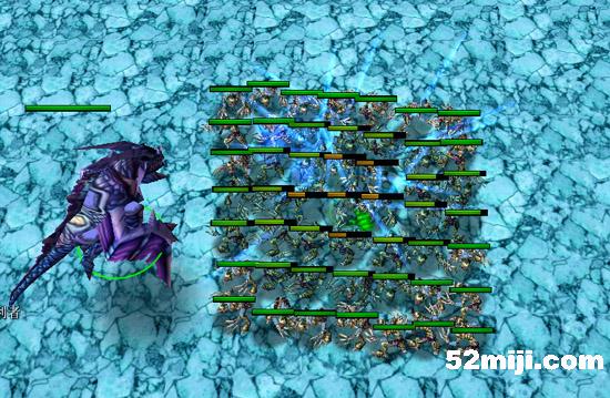 如图,对蓝龙的攻击溅射进行测试,将49个食尸鬼按7*7排成方阵,让蓝龙攻击最中间的食尸鬼。可见有6个受到了全额伤害,9个受到1/2伤害,11个受到1/4伤害,共有26个食尸鬼受到冰冻效果。其他6种龙的溅射范围和蓝龙一样,而且这种溅射是不分敌我的,但是只有蓝龙有冰冻效果。