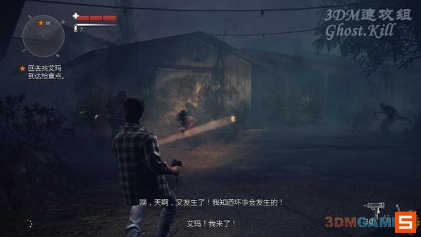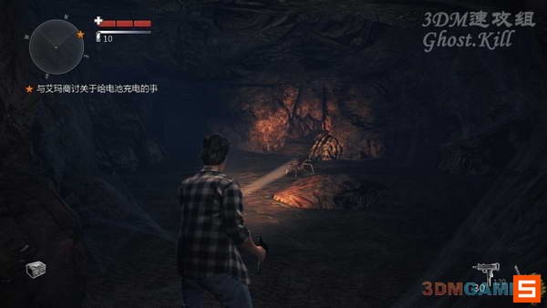 来到车库与艾玛交谈,这次只需要找一个电池即可,在远处的一个洞穴中,进去拿到电池后被成群的蜘蛛围殴,用手电照死它们离开洞穴,返回车库。一路上不断有蜘蛛从地理钻出来碍事,不要管他们了,一路冲刺回去。