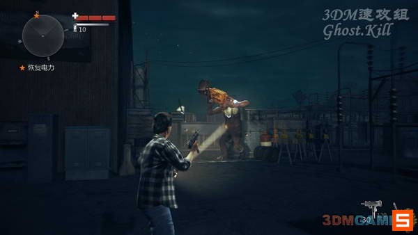 又一次回到第一关的场景,还没出去峡谷呢就遇到了新敌人,拿电锯的民工。块头很大,也就是说血很厚,多费点子弹而已,没什么难的。干掉之后直接使用三个道具让卫星落下,再去车库找艾玛。由于前两次艾玛都被黑暗弄死了,这次要救她,到车库后面修理保险丝,然后再去车库对面的房间拿天文台钥匙,过关。