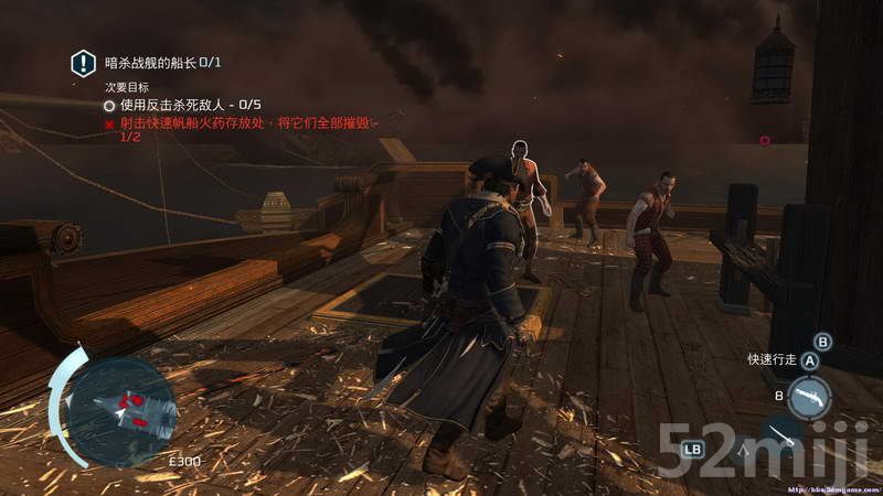 之后则是与海尔森的对决,因为康纳身受重伤;所以你必须借助附近的木桶之类的障碍物来有效杀伤他