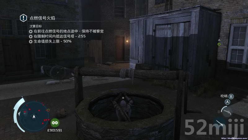 来到波士顿,你需要来到城南的守卫塔顶处点燃信号。整个路途需要不被守卫发现才能达到100%的同步率,这个比较简单