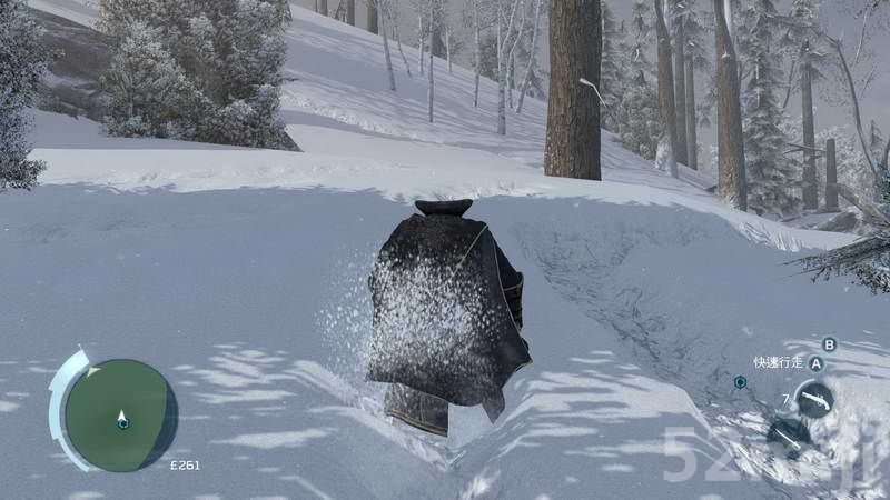 由于地上的积雪很厚,你是无法在此进行冲刺的;所以追赶的路途之中你需要尽量爬上一些沿途的树干来达到快速前进的效果