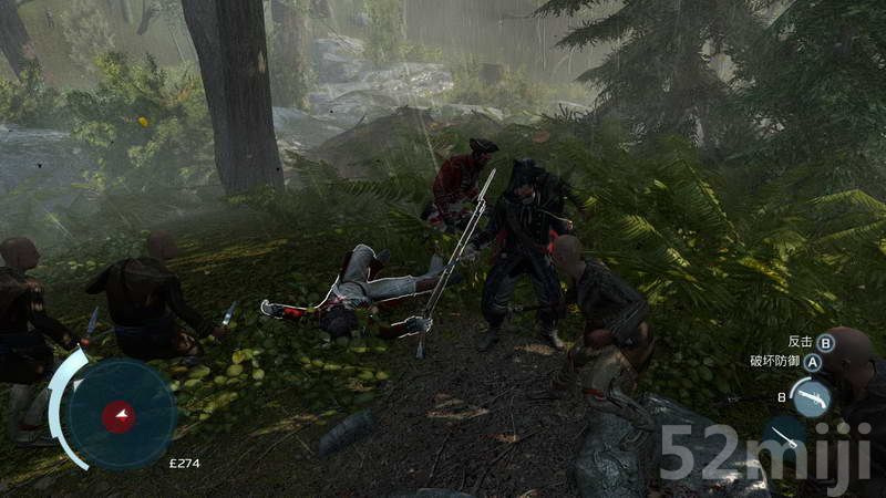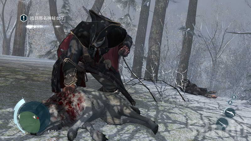 之后半途会来到一个宿营营地。这里你需要杀死三个雪狼才能继续前进。而这里的方法则是快速的按QTE,否则你会大量失血甚至死亡。后面对付一些野兽也是如此的方法,大部分都是需要QTE来完成对其的杀死