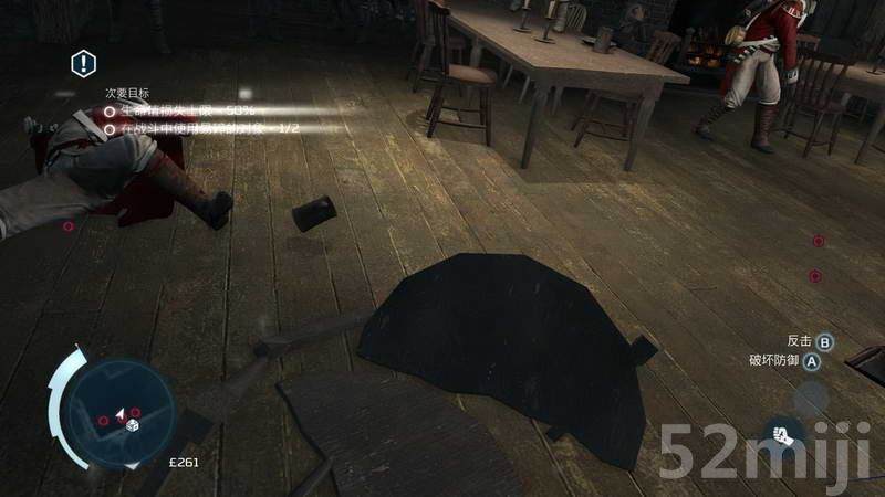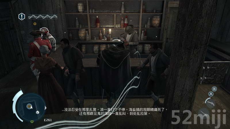坐在酒馆上的位置就可以完成窃听,之后离开酒馆之时;一帮醉鬼来找海尔森的麻烦。后面则是一场恶斗。这里的恶斗难度不是太大,注意先抵挡敌人的进攻之后快速破防,将其扔到附近的易碎物附近让其受伤
