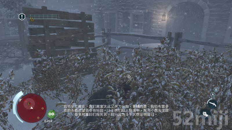 而后则是窃听,这个比较有难度。首先你需要故意引起门口一个巡逻守卫的注意,然后躲藏在草丛之中,等到他过来搜寻之时迅速杀死他