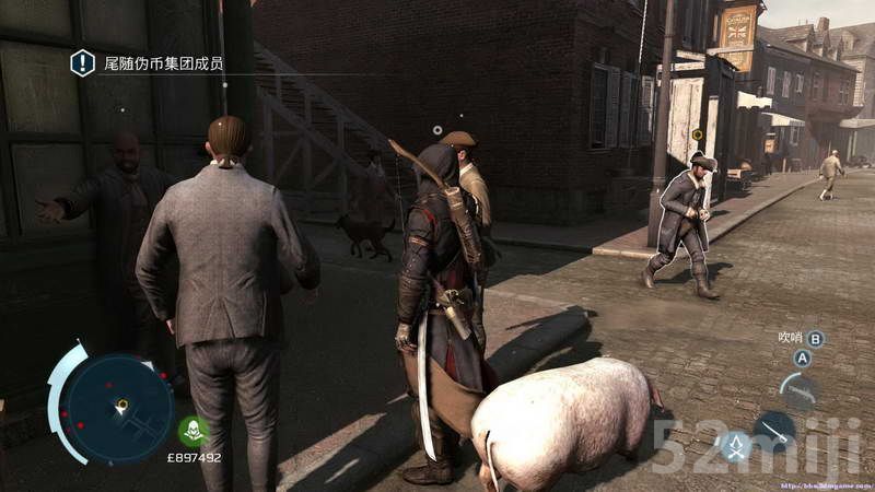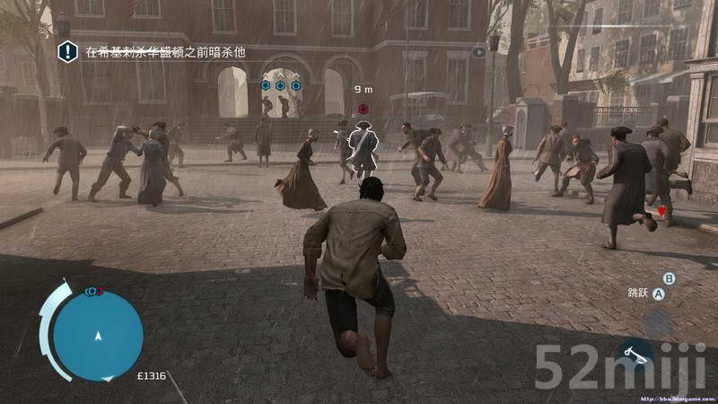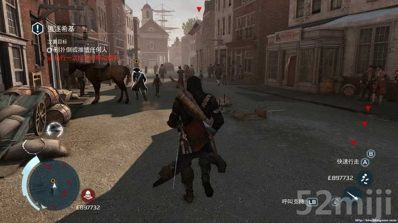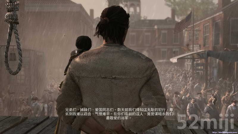 来到刑场,在吊索降落的一刻快速QTE让康纳落下;之后急速冲到即将刺杀华盛顿的希斯面前杀死他(时间是完全足够的)