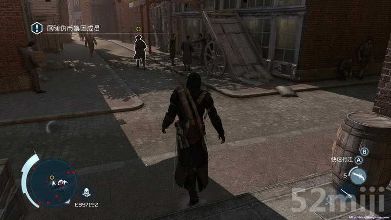 下图所示人物第一次被抢劫的区域不要急着赶过去,而是如下图混入人群之中;等待他走出来