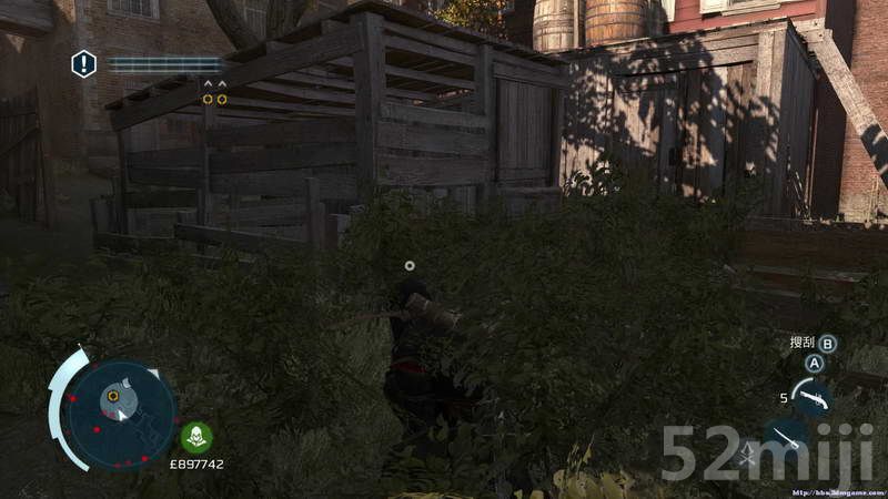 在第一次窃听的地方躲在草丛里面即可,而附近的守卫可以使用袖箭拖到草丛中暗杀掉