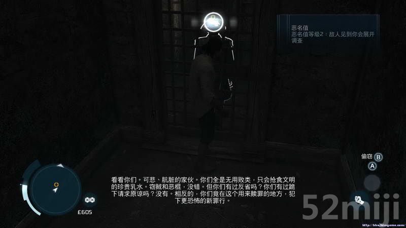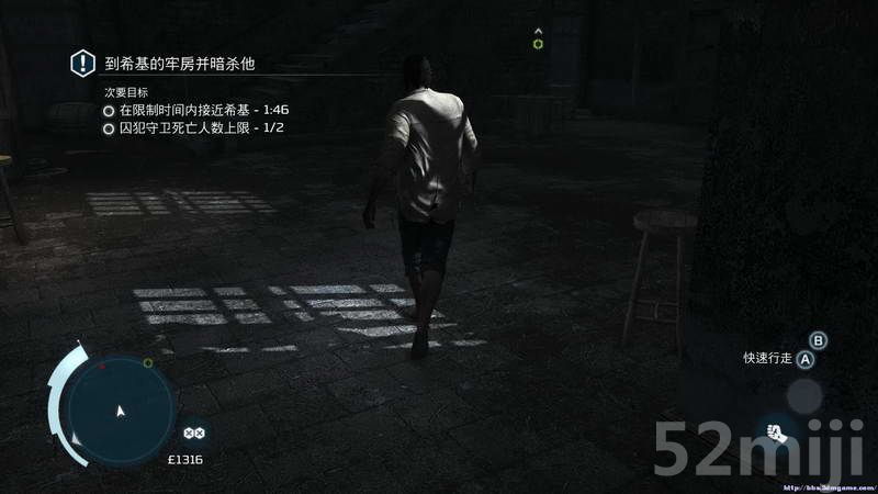 一路往上即可来到上层希基的牢房区域。这里很好躲避,记住不要随便暗杀太多的守卫,否则无法完成次要的条件