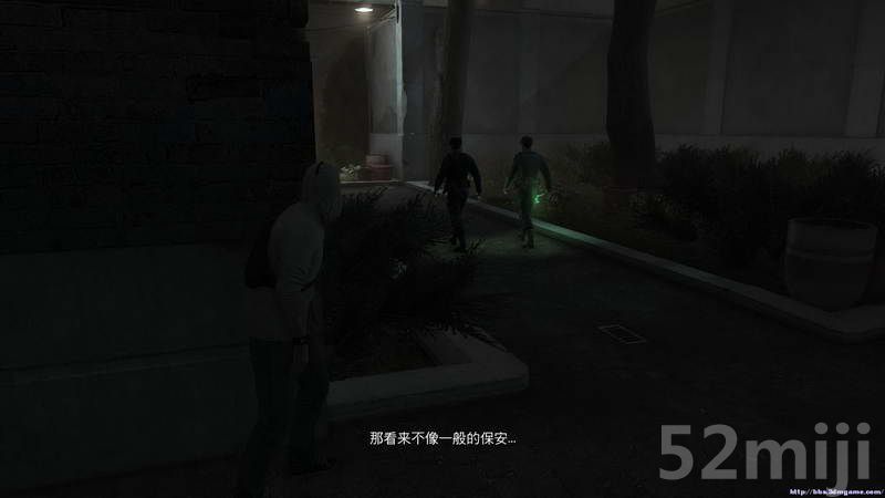 因为本关有保安的存在,而且你前期是完全不能被保安发觉的(否则自动判定游戏失败),所以在前面躲避保安的路途当中全程要尽量慢走前进