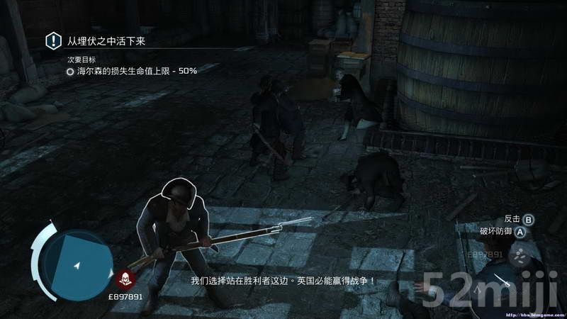 本章的最后一个关卡。同海尔森合作除掉丘奇之后,康纳觉得不如与圣殿骑士联合来彻底摆脱英国对于美国的控制