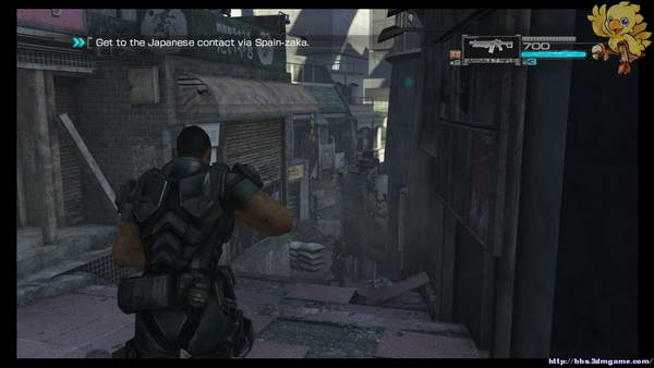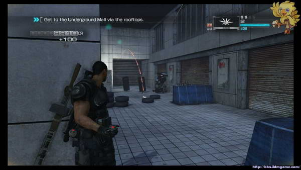机器人出现后不要火拼,先上左边的建筑,上楼,找到电缆连接处,打断后,麻毕机器人,然后在上右边的楼层,跳到机器人头上,然后给力射死它。