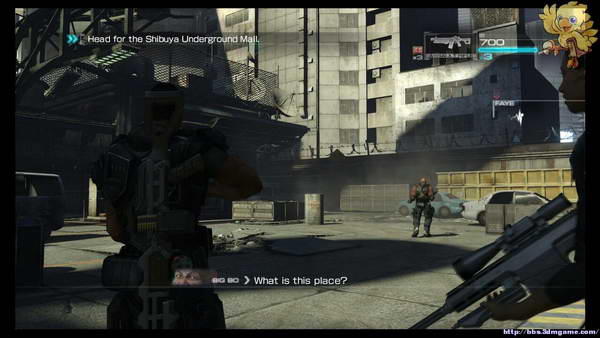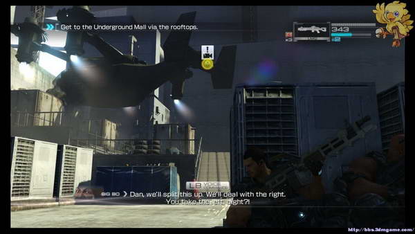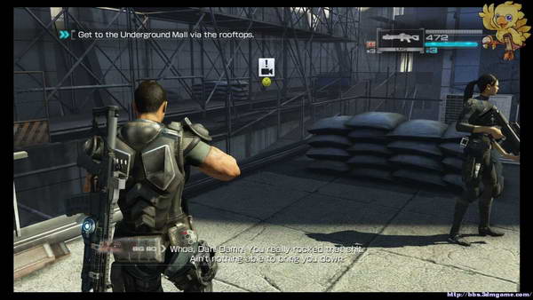 此boss很简单,找到旁边的火箭炮,打掉boss的机器脚,然后就完成次段任务,队友会合.跟着队友进入地铁,进入动画。