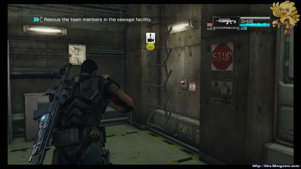 和队友进去,队友进入电梯后,进去动画,另外2明队友被困,需要你去救他们,这时候原路返回.第一房间开门后出现机器人,清理到,从左边的梯子上去。