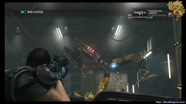 第三阶段处,中间有炮台,但是子弹有限,用完要自己搬弹药上弹,打掉boss到蓝色处的门,进入动画。