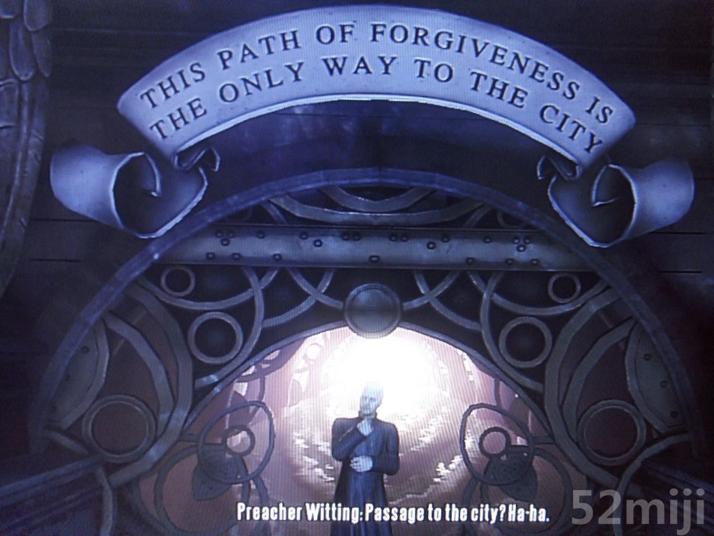 按十字键“↑”可以发动“指路”(显示时,有时间限制),来到了挂着“利劍”、“钥匙”、“卷轴”的楼梯顺道而下,便可以来到了“唯一进入Columbia的道路--宽恕者之道”