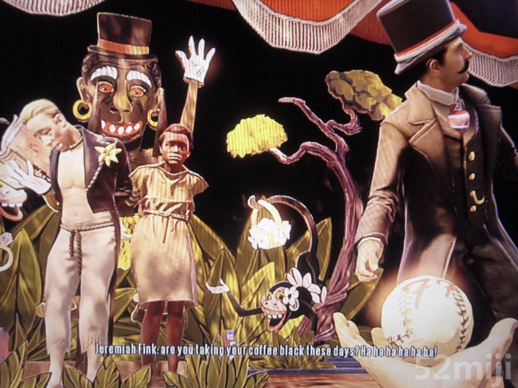 进入raffle后,Booker遇到了两个一男一女的怪人,要求来访者都必须掷钱币(这两人在之后的剧情内定会有很大帮助)