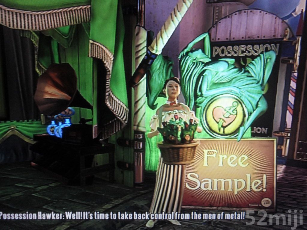 摆脱小股警察叔叔后,Booker来到了之前在raffle门口见到了那掷钱币的一男一女,此时妇人需要Booker喝下“护甲”饮料才能够放行,喝下后,Booker就能够获得超自然能力所覆盖的防护甲