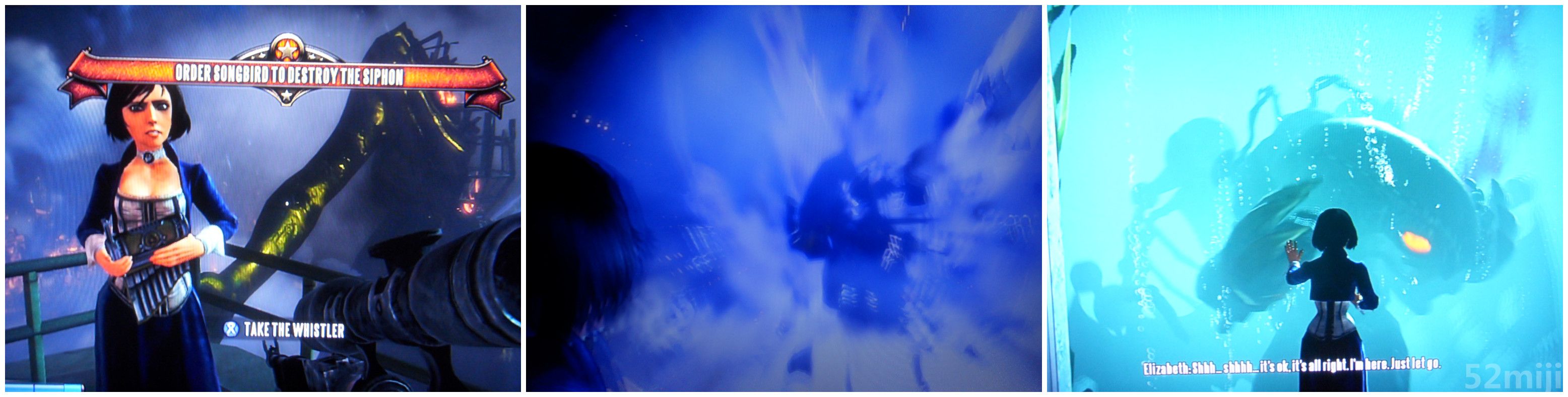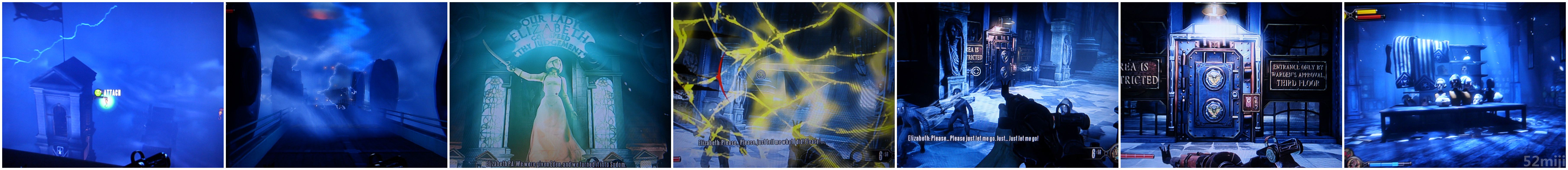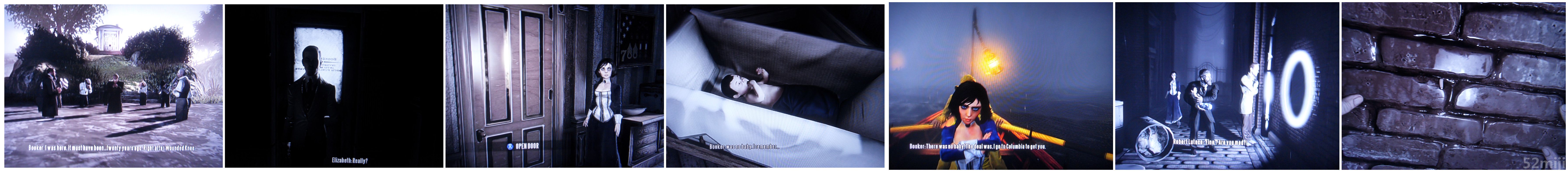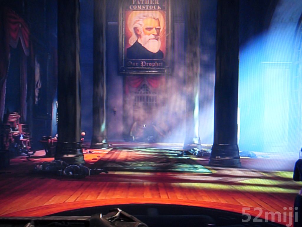 要前往comstock的住所需要通过一座大桥,拉动正前方的摇杆后,那只巨型机械鸟又突然而至把Booker按到在地,瞬间把Booker扔至一座楼层内。Booker第三度进入黑白梦境当中,前门居然站着那对神秘的男女,而伊丽莎白则站在了桌子前,Booker随后进入偏间后便苏醒。醒来后,看见伊丽莎白为了拯救Booker选择向机械鸟道歉并提出被抓回“家”里。作为男主角的Booker当然义不容辞地去救她呐!