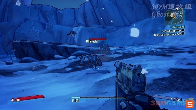 由于是初期,敌人非常脆弱,一开始遇到的怪两枪就能打死。杀怪可以得经验,屏幕正下方是经验条和等级。路上有些闪绿光的雪块,近战攻击或者按使用键将其破坏,可以得到补给。
