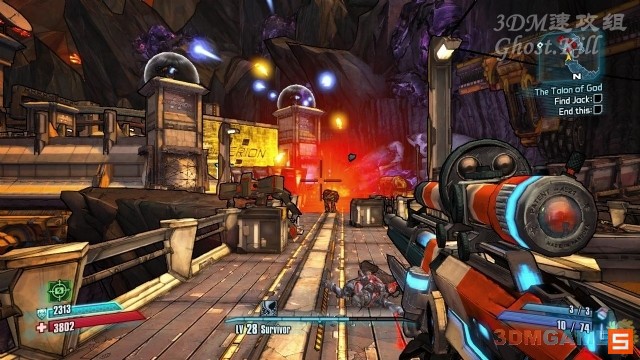 前往Eridium Blight与Claptrap见面,跟着他来到Hero's Pass的大门前,在他开门期间需要保护他。大门上方的防御炮不要管,过一会会自动关闭。机器人的数量比较多,但是弱爆了,很轻松的可以守下来。