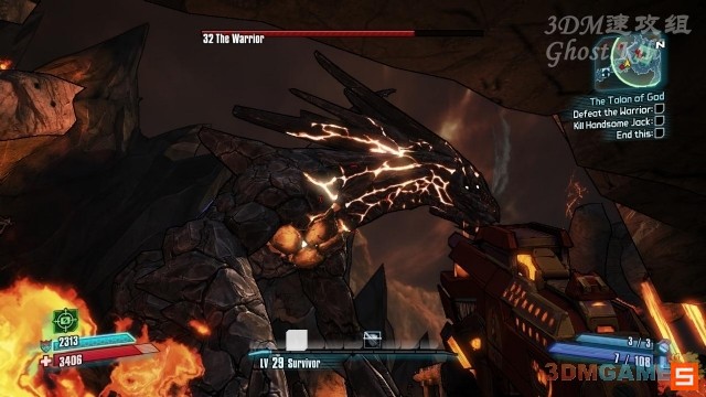 BOSS没什么弱点,喷火或者吼叫的时候射到他嘴里可以打出暴击,平时一直对着他的脑袋打吧,偶尔能打出暴击。没弹药的话就去可以变出补给箱的装置补充,然后再回到桥下,慢慢把它耗死。