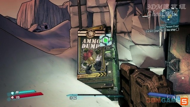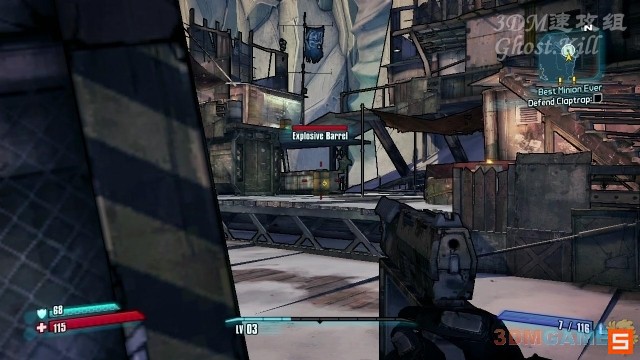 保护Claptrap通过敌人营地,和敌人打得时候多利用周围可破坏的物品。例如黄色有火焰标记、可以爆炸的油桶,紫色或者绿色这些有辐射标记的桶,都可以秒杀附近的敌人。如果生命值空了不会立刻就死,趴在地上,屏幕下发有个红色进度条,在进度条空了之前杀死任意一个敌人可以复活,反之则死。