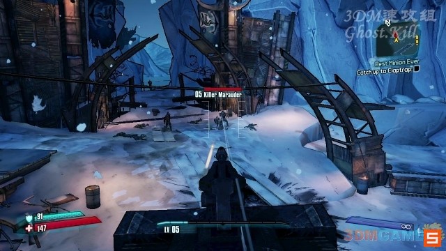 Claptrap走得比较快,已经穿过了敌人营地。我们也跟着杀过去,救出被敌人包围的Claptrap。