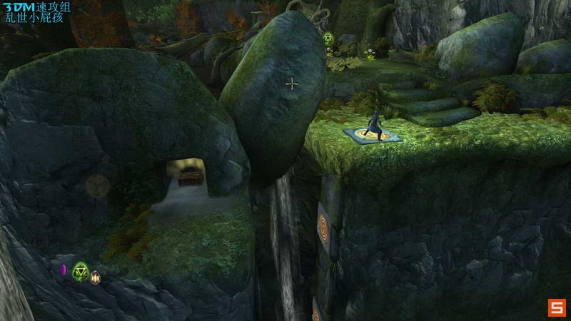 然后跳到上面会发现几个机关,沿着墙跳上去再踩机关就会打开左边小洞,进去拿拼图
