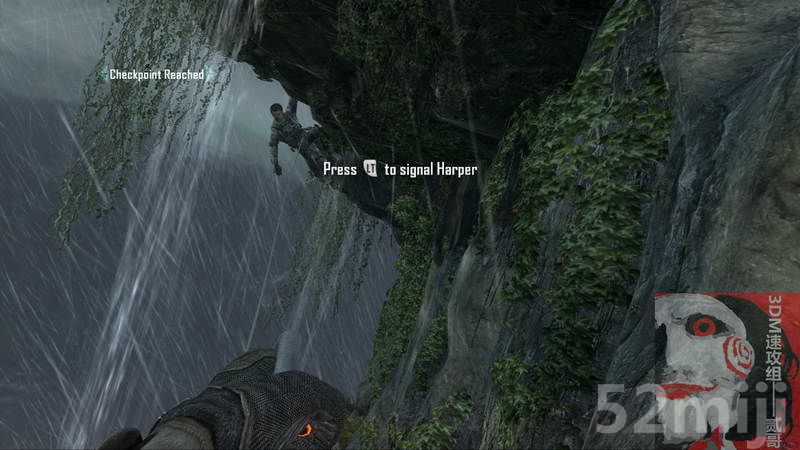 2.与队友Harper,双人配合,通过吸附手套飞檐走壁。LT示意队友准备,LS辅助队友寻找落脚点,自己下落后,同时按住RT与LT吸附到悬崖,重复3次即可。