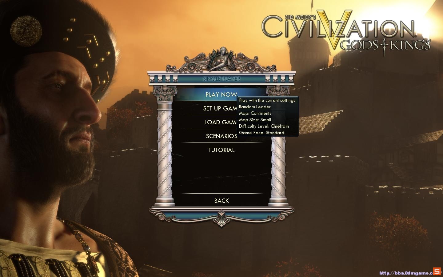 游戏的整体界面同CIV5原版一样,由上之下为单人,联网游戏;菜单和MOD设置加载。当然这里我们一般进行单人的游戏