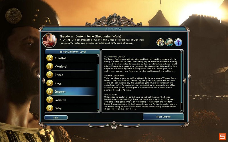 如果对于那些不是太骨灰的高阶文明玩家来说,本资料片的剧本总体的难度还是不小的。因而在进行剧本选择的时候,一定要注意每个剧本的详细说明内容,胜利条件,游戏环境设置,以及特殊场景下的特殊条件。