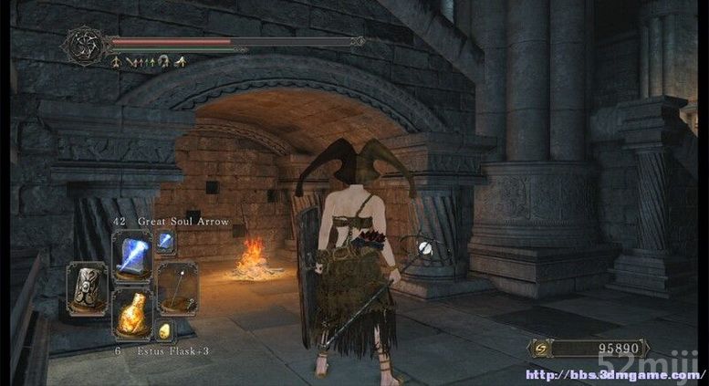 最后的场景先下去干掉敲钟的,不然一屋子鬼魂+6个骑士秒送你回火堆,打死敲钟的以后慢慢射死骑士即可。