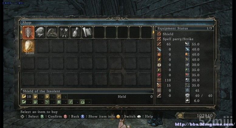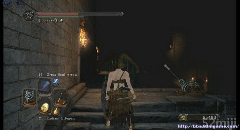 下个场景的幽灵NPC会卖草纹盾,特效是加速精力恢复。不过上去的时候注意上面4个用弯刀的处刑人,被围殴肯定死。