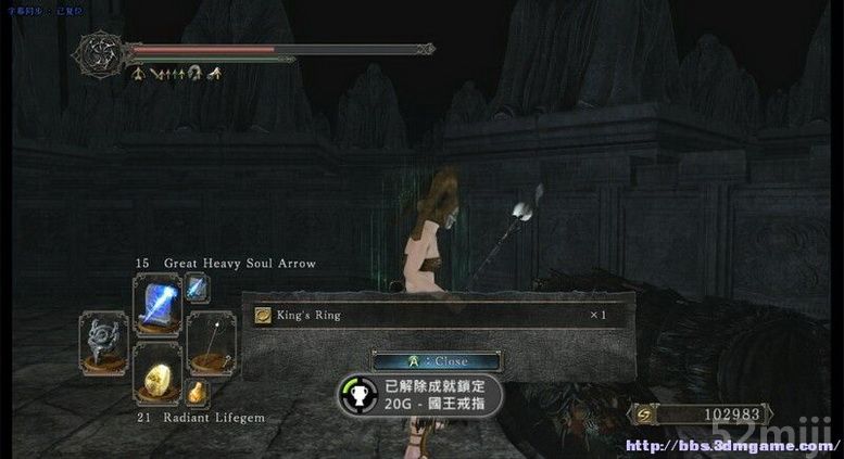 往后走能看到不死王的活尸,在后面找到“王者戒指”