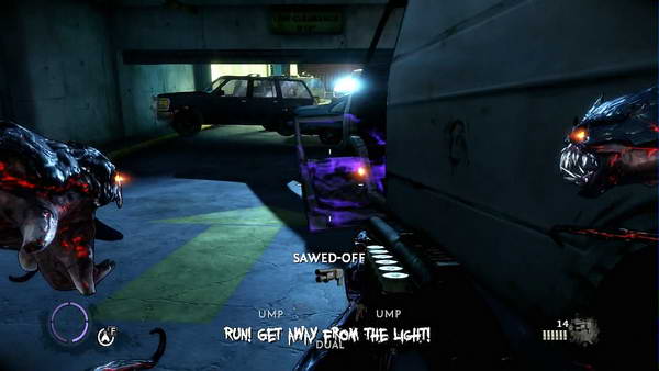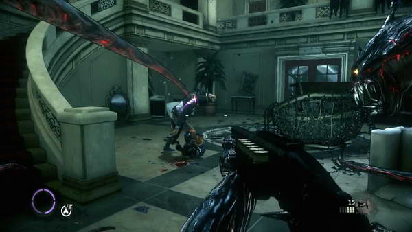 远距离时用步枪点他,衝锋之后有大硬直可以上前用触手挥。