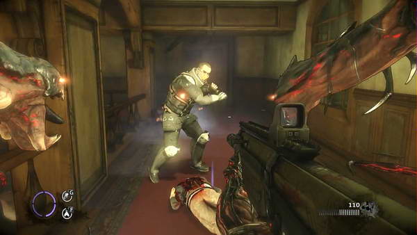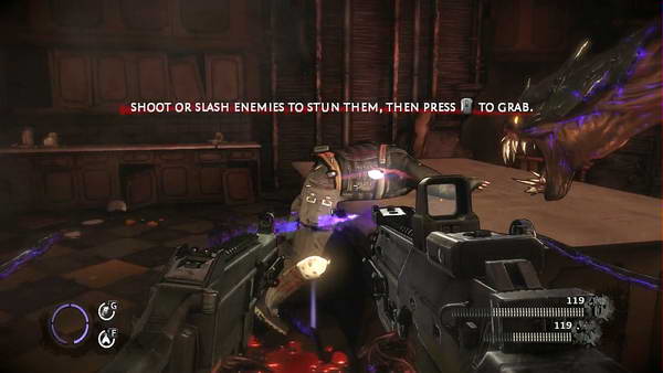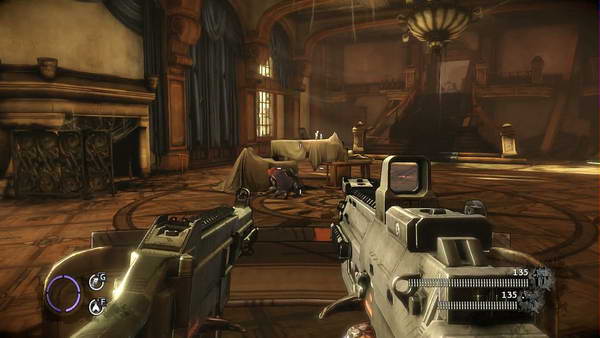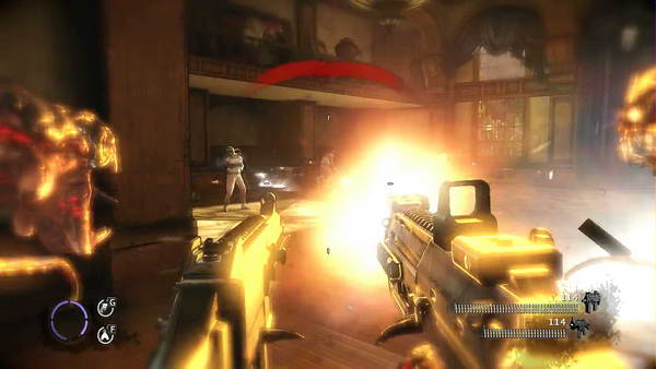 操作人物变回主角,这个时候黑暗力量被吸乾只能用枪,小心管理血量。