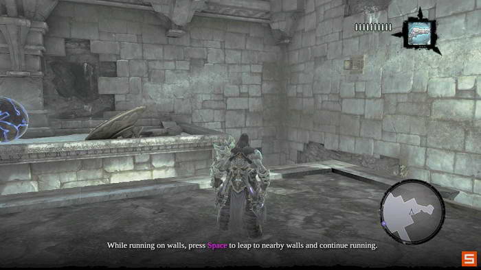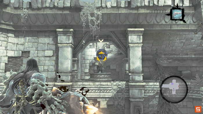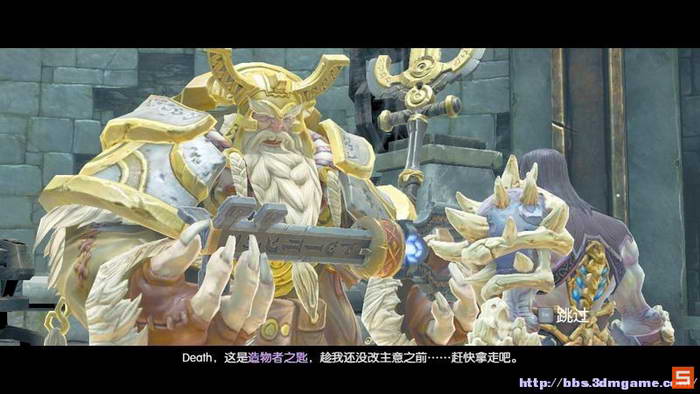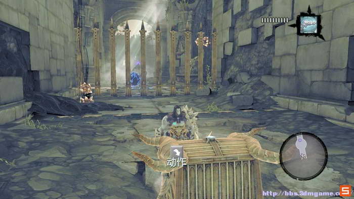 本节有卡恩全程陪伴你。卡恩在本节点有主要两个用途,一个是如下图在你开启石门之时,抗住石门从而让你们一起通过。第二则是在特殊的地点将DEATH飞掷到无法到达的高台(这点很重要)