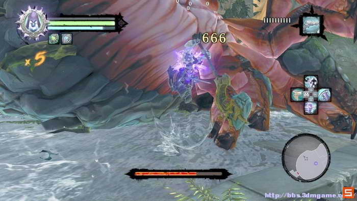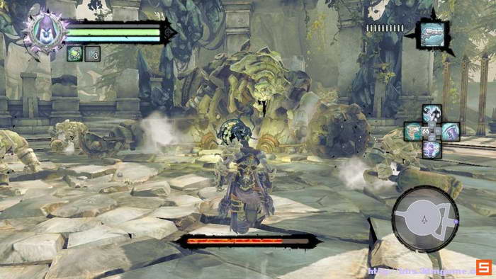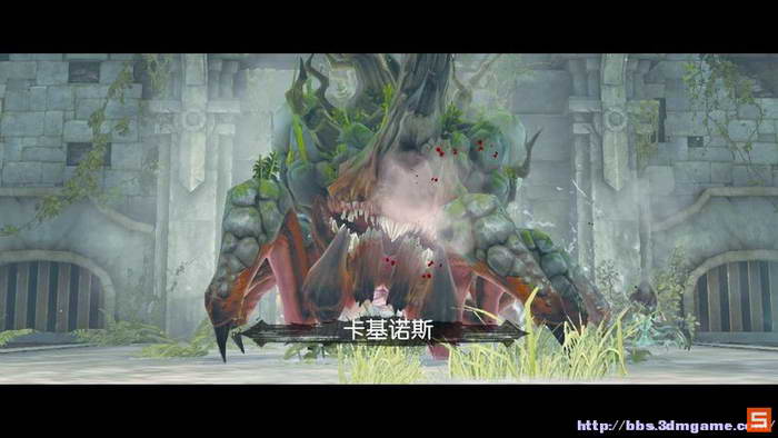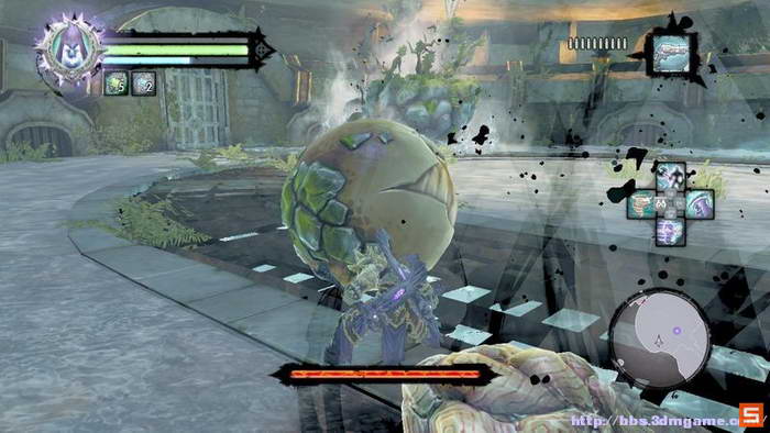 打开两边的水道之后,一路往南就是我们的本节的BOSS战斗 卡基诺斯。这个BOSS唯一的伤害办法是在其冲击之后,将上层震落的绿蛋按鼠标中键投掷向该BOSS,将其击倒之后才能进行有效的伤害。注意该绿蛋如果不在时间限制内设使用,会自动孵化出来小怪攻击你