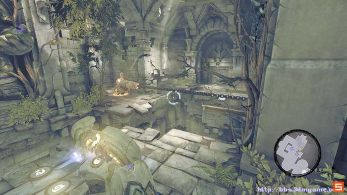 然后一路往南,使用构造体释放锁链连接右部的平台,然后沿着锁链来到南部