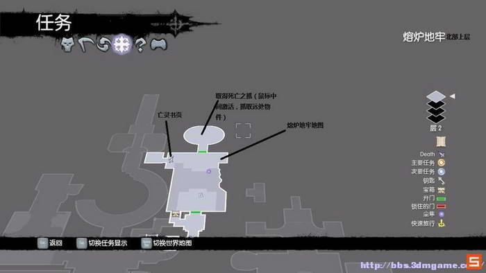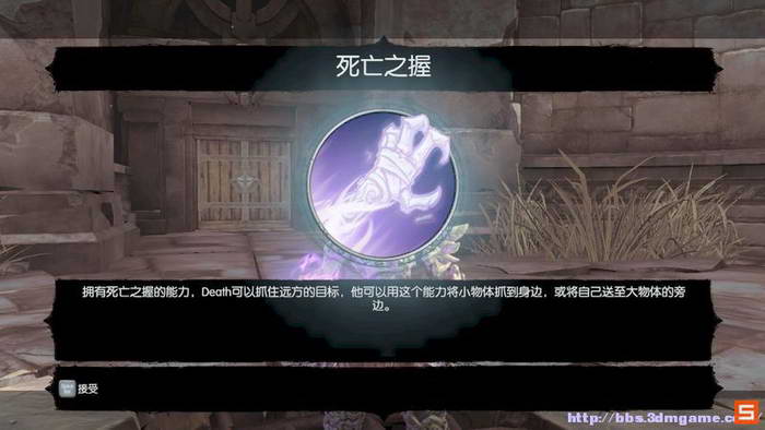然后打开北部上层的房间,获得死亡之握;中后期极其有用的物品。死亡之握的用途不仅仅在于抓取远处的物品和飞跃障碍,更多的则是在其打怪时候的使用