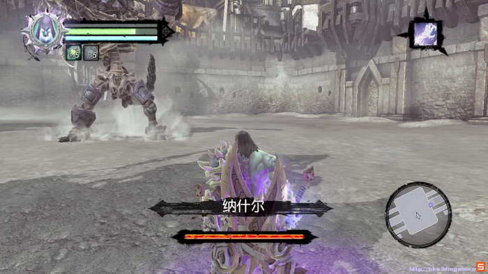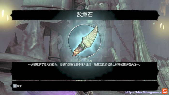 取得三个敌意石头,之后;放置在竞技场中间的骷髅雕像上即可召唤本节BOSS 纳什尔
