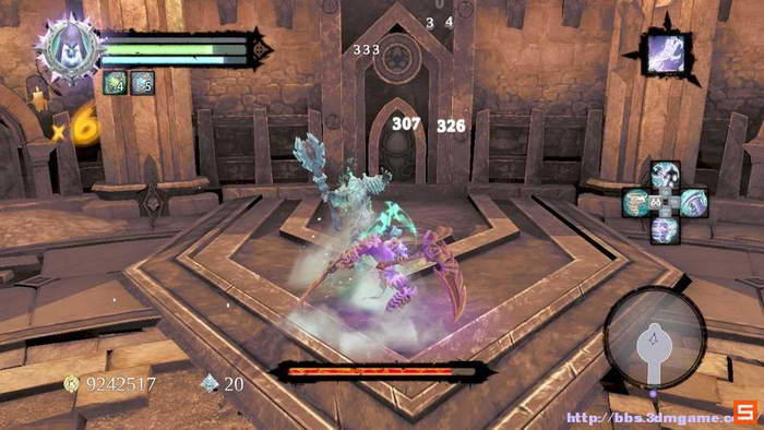 而移动速度较快的一些利爪兽,可以使用死爪吸附到DEATH身旁攻击。而苦难这个BOSS类怪物,如同前面的一些BOSS一样,移动速度较慢,DEATH可利用不断的翻滚躲避干掉这个家伙